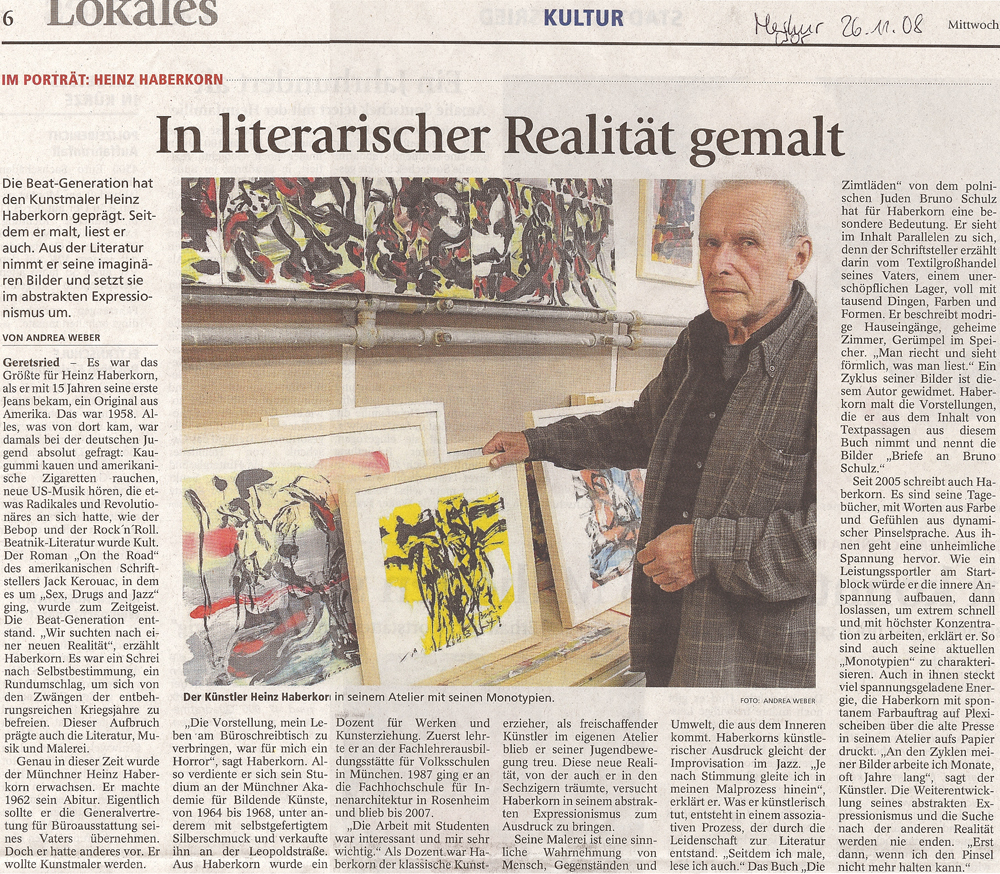 INHALT: Die Beat-Generation hat den Kunstmaler Heinz Haberkorn geprägt. Seitdem er malt, liest er auch. Aus der Literatur nimmt er seine imaginären Bilder und setzt sie im abstrakten Expressionismus um.