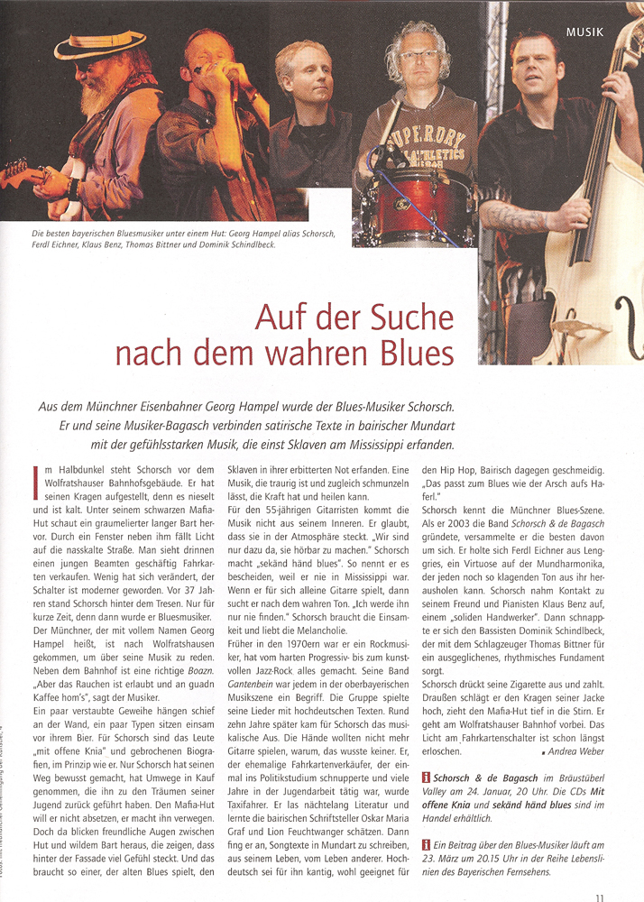 INHALT: Aus dem Eisenbahner Georg Hampel wurde der Blues-Musiker Schorsch. Er und seine Musiker-Bagasch verbinden satirische Texte in bairischer Mundart mit der gefühlsstarken Musik, die einst die Sklaven am Mississippi erfanden.