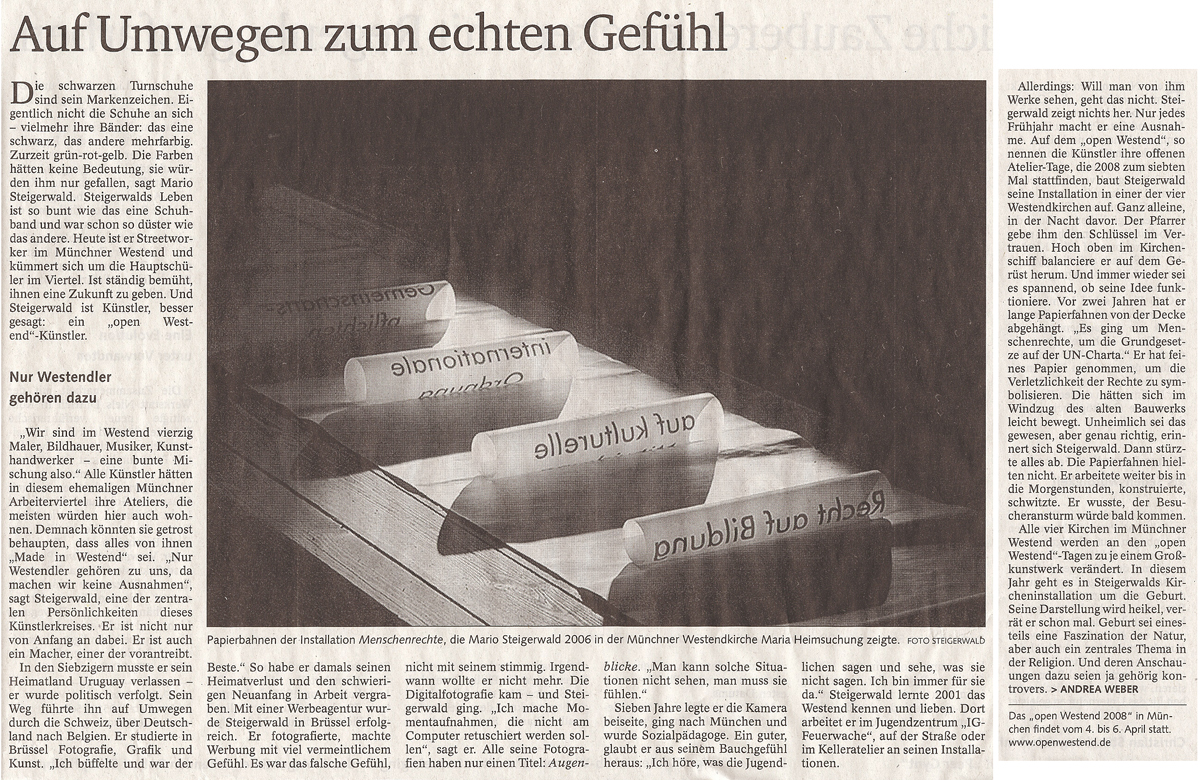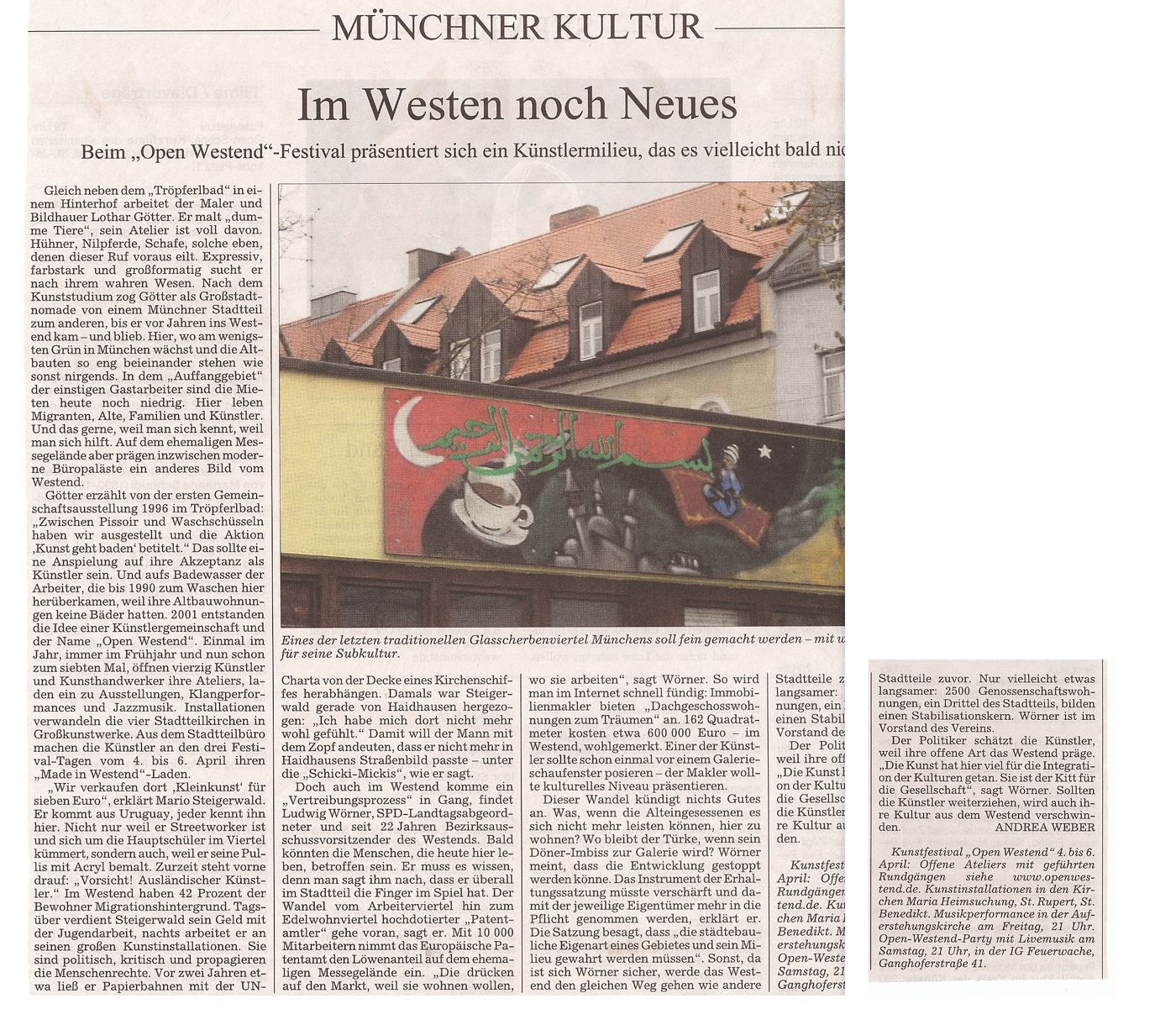 INHALT: Seltener Kunstgenuss: Der Münchner Fotograf Mario Steigerwald, der sonst wenig von seiner Kunst zeigt, beteiligt sich wieder mit einer Installation an der Aktion „open Westend”