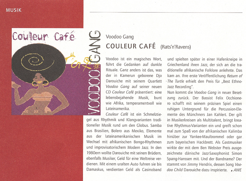 INHALT: CD-Tipp "Voodoo Gang" bringt neue CD "Couleur Café" auf den Markt